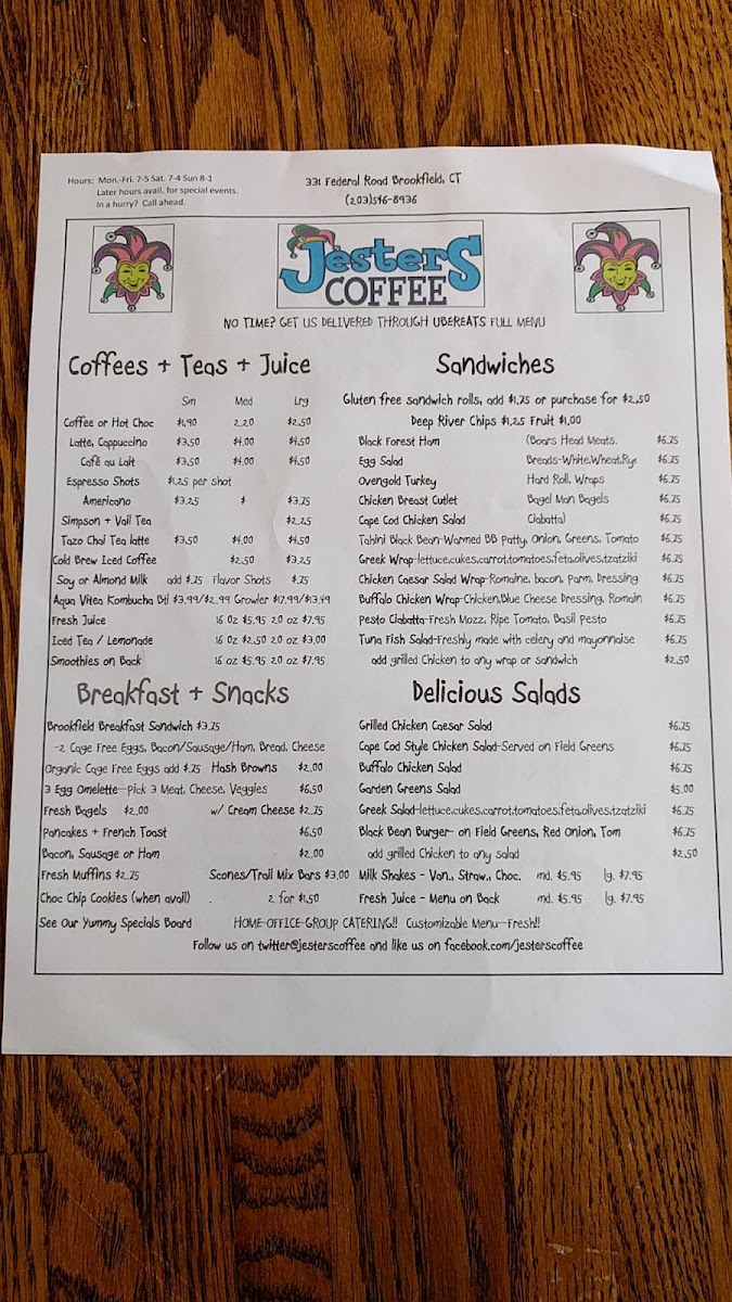 Welcome to Jesters Coffee, a charming gem located at 331 Federal Rd, Brookfield, CT. Known for its delightful breakfast offerings, Jesters Coffee is the perfect spot for your morning cravings. Customers rave about the delicious breakfast sandwiches that are served swiftly, ensuring you’re energized for the day ahead. The latte and cappuccino options are particularly noteworthy, with various milk choices available for a personalized touch.